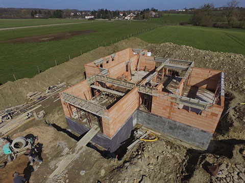 Démolition d’une vieille bâtisse avec évacuation des gravats, reconstruction totale de 2 maisons neuves aux normes RT2012. Réalisation du drainage, des fondations et de la construction complète +escalier en béton et plancher bois pour l’étage.